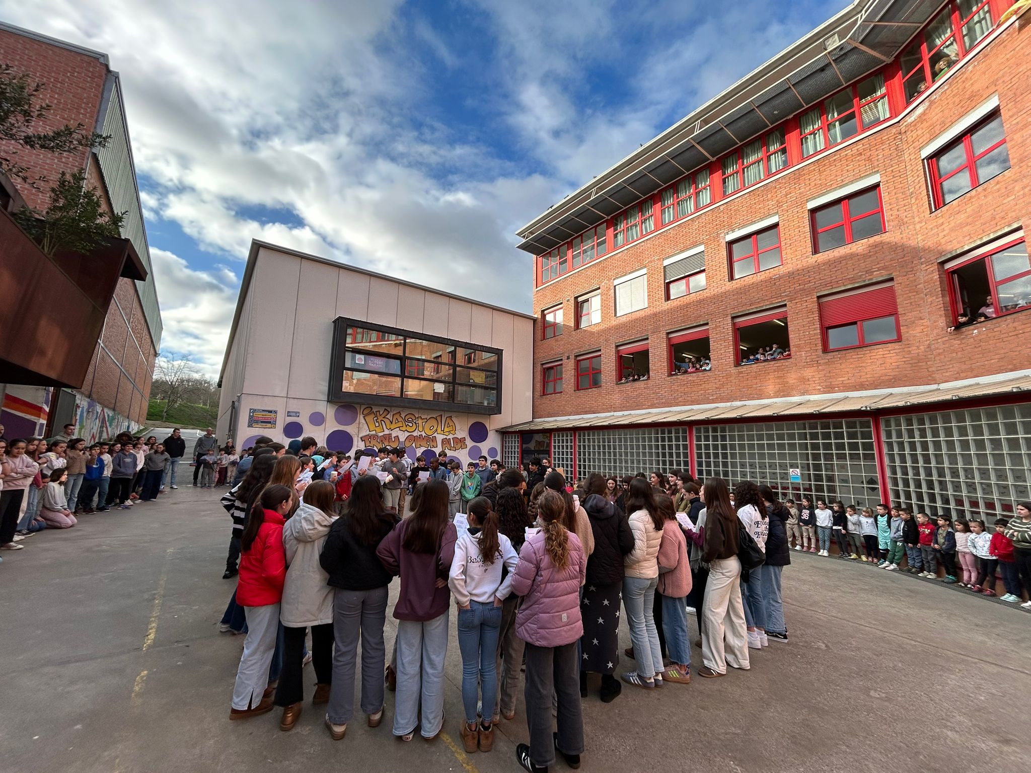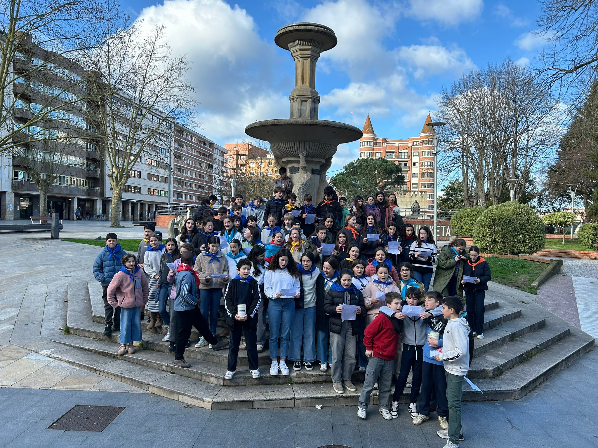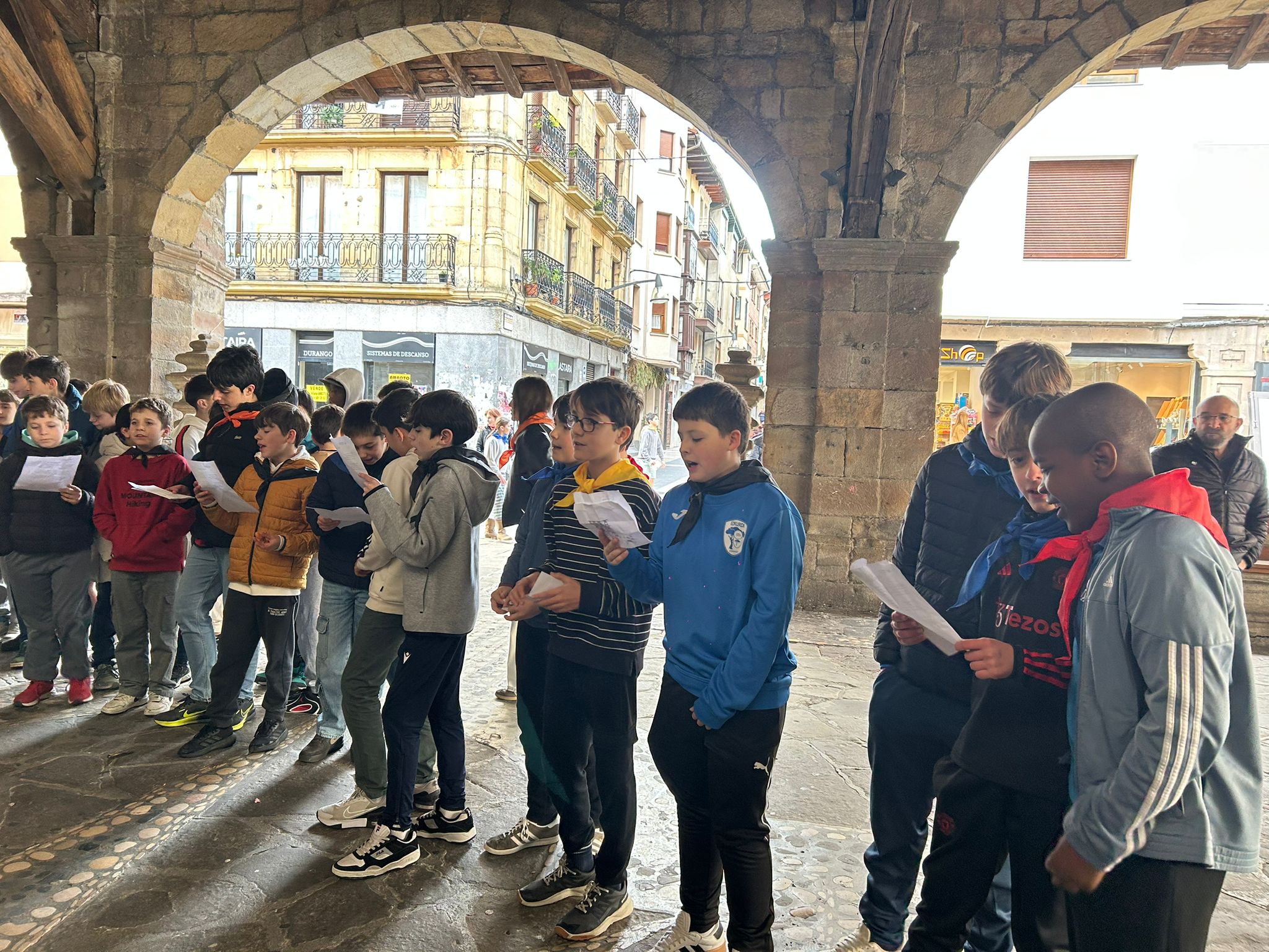 [GALERÍA DE FOTOS] 1º ESO: Eguen Zuri febrero 15, 2026 | ESO, Ikastola, Noticias El pasado jueves el alumnado de 1º de la ESO cantó Eguen Zuri por las calles de Durango.